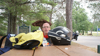 Had a little episode with my helmet. I had stopped long enough to do a a one-flat chain adjustment (you turn the adjustment bolt, one flat) which went very well. Then I knocked the helmet off the mirror, which is not a great place to secure your helmet I now know. It hit and I couldn't see any damage until I started to ride. The retainer on the right-side, which holds the ratcheting visor mechanism and the flip-up piece had "unclipped" and needed a T20 Torx adjustment.